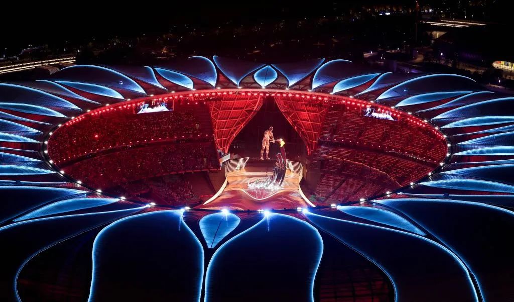开幕式临近尾声,当闪着金光的“数字人”踏潮而来,奔向“大莲花”上空,打破时空壁垒,和场内火炬手共同点燃主火炬时,这一刻,熊熊火焰所照亮的,不仅仅是体育健儿奋勇拼搏的精神,还有每一个为了美好生活而默默努力的你、我、他。
